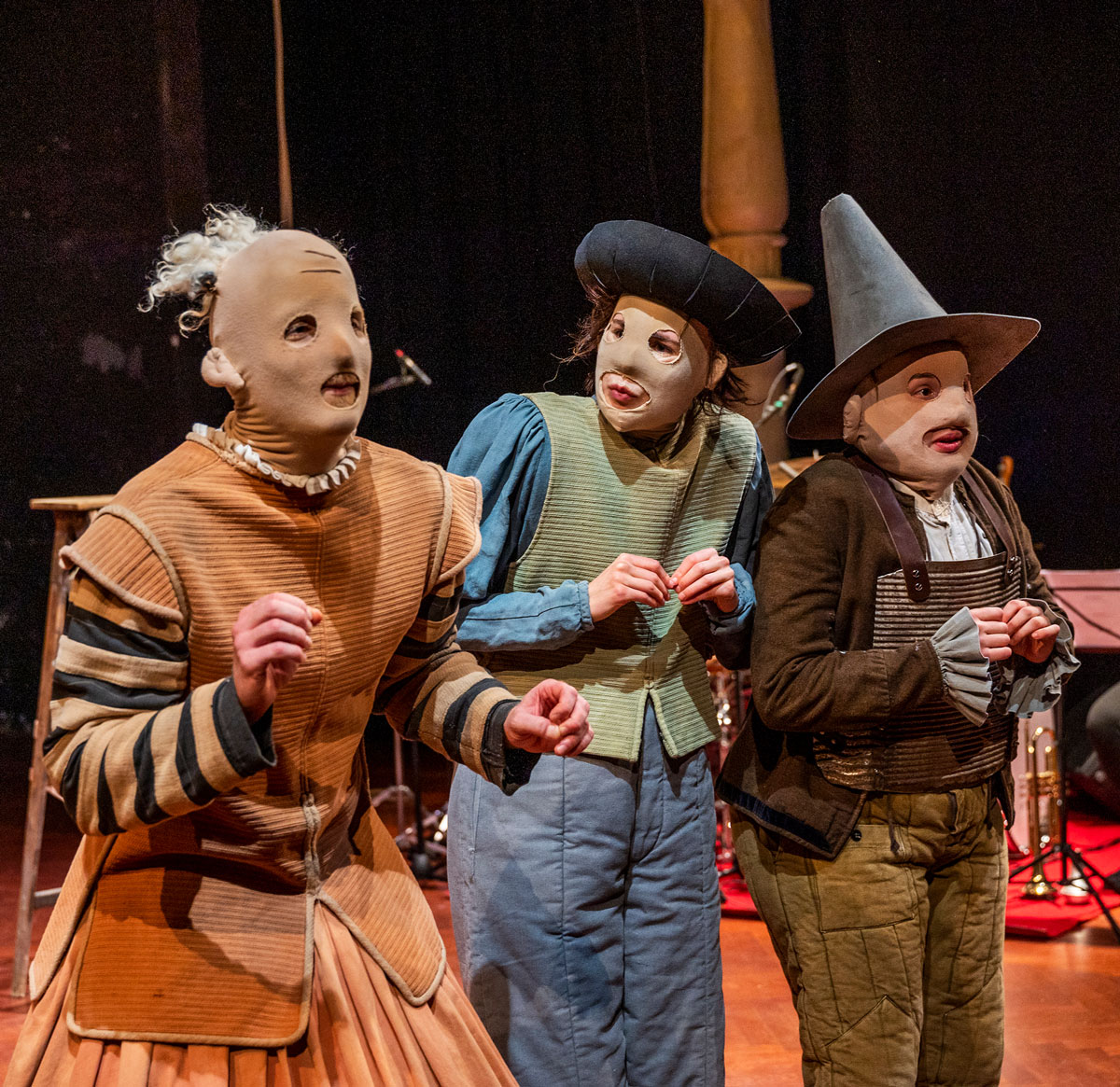 Im August und September 2025 hatten wir die große Freude, Heinrich von Kleists »Kohlhaas« am Theater Plauen/Zwickau mit Mitgliedern des Ensembles erspielen zu dürfen. Herausgekommen ist ein wunderbarer Abend mit phantastischer Musik von Sebastian Undisz und drei neuen, wundervoll schrägen Clowns namens Hanscarl, Pimpernelle und Mädesüß, gespielt von Hanif Idris, Paul Heimel und Claudia Lüftenegger, die auf ihre liebevolle und kluge Weise die komplexe und nicht immer leichte Geschichte um den Pferdehändler Michael Kohlhaas auffächern.