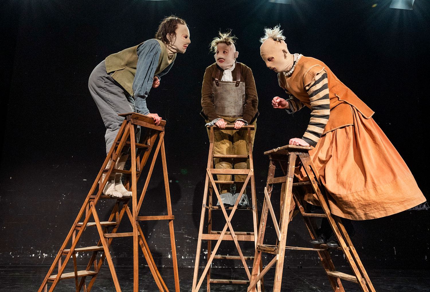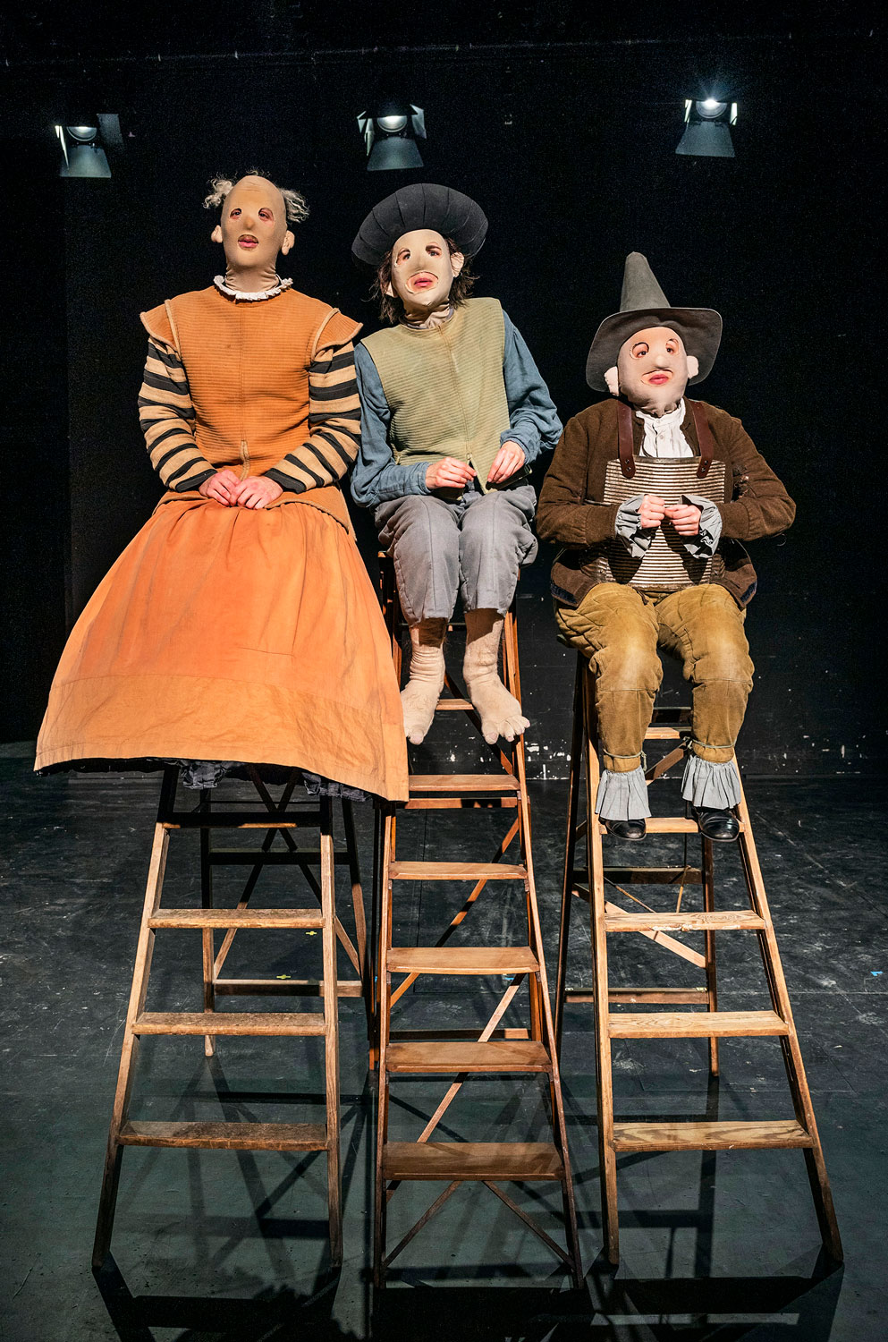 Es spielen Rico Dietzmeyer, Felicitas Erben, Jojo Rösler | Musik & Komposition Johannes Cotta, Annegret Enderle, Christoph Püngel | Regie & Szenarium Rico Dietzmeyer | Masken & Szenographie Franziska E. Schubert | Bühne & Ausstattung Lisa-Maria Totzke | Co-Regie & Licht Christoph Püngel | Mitarbeit Gerda Baumbach | Grafik Lisa-Maria Totzke | Fotos Rolf Arnold