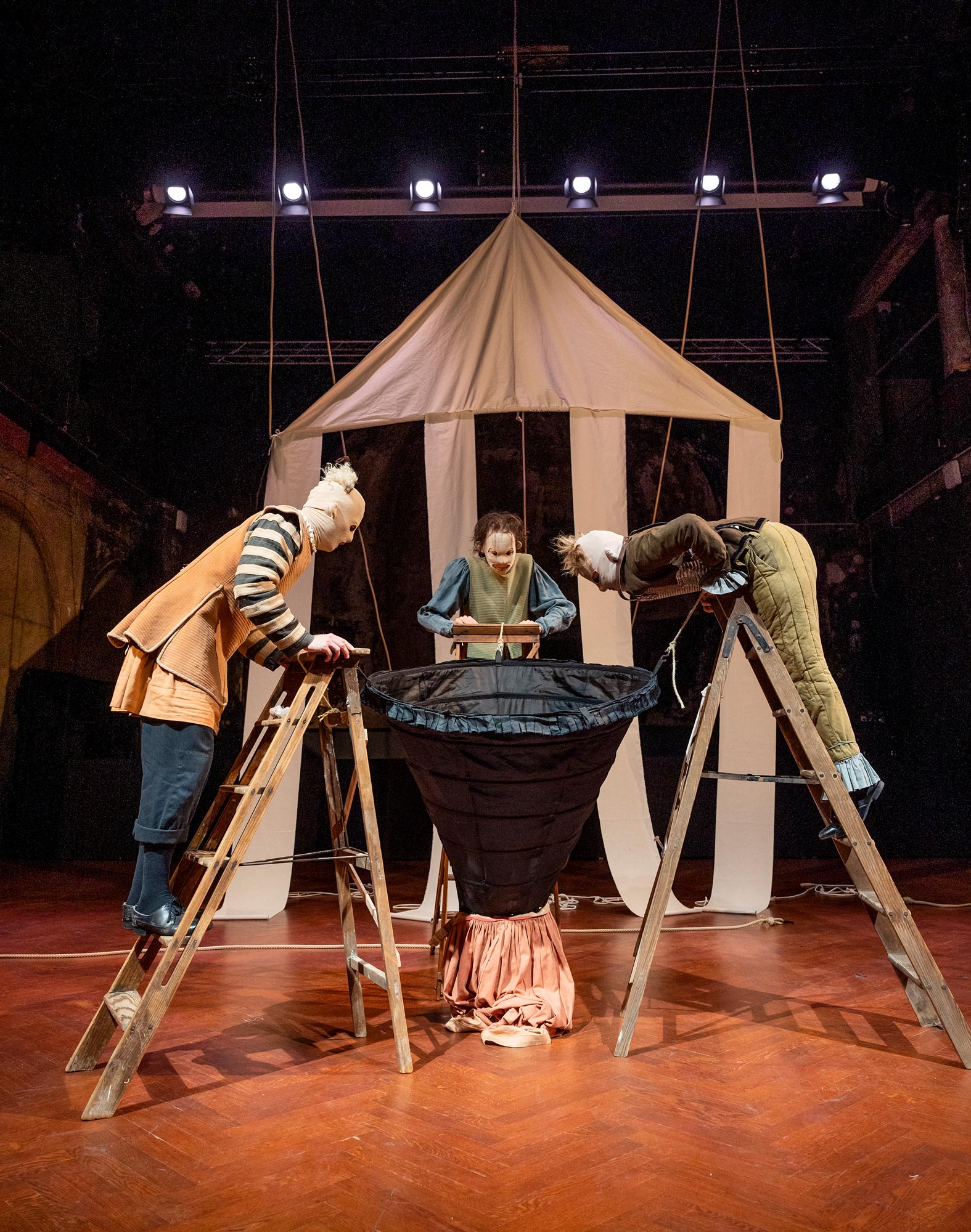 Es spielen Rico Dietzmeyer, Felicitas Erben, Jojo Rösler | Musik & Komposition Johannes Cotta, Annegret Enderle, Christoph Püngel | Regie & Szenarium Rico Dietzmeyer | Masken & Szenographie Franziska E. Schubert | Bühne & Ausstattung Lisa-Maria Totzke | Co-Regie & Licht Christoph Püngel | Mitarbeit Gerda Baumbach | Grafik Lisa-Maria Totzke | Fotos Rolf Arnold