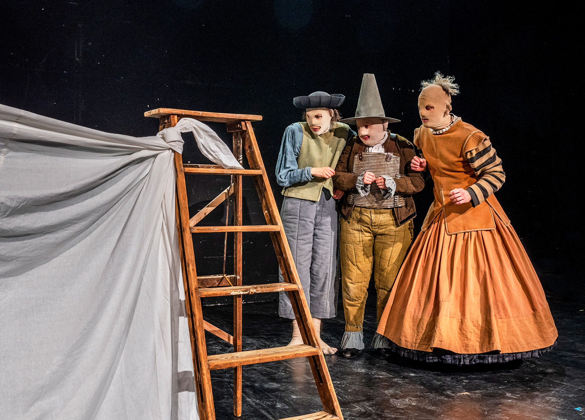 Es spielen Rico Dietzmeyer, Felicitas Erben, Jojo Rösler | Musik & Komposition Johannes Cotta, Annegret Enderle, Christoph Püngel | Regie & Szenarium Rico Dietzmeyer | Masken & Szenographie Franziska E. Schubert | Bühne & Ausstattung Lisa-Maria Totzke | Co-Regie & Licht Christoph Püngel | Mitarbeit Gerda Baumbach | Grafik Lisa-Maria Totzke | Fotos Rolf Arnold