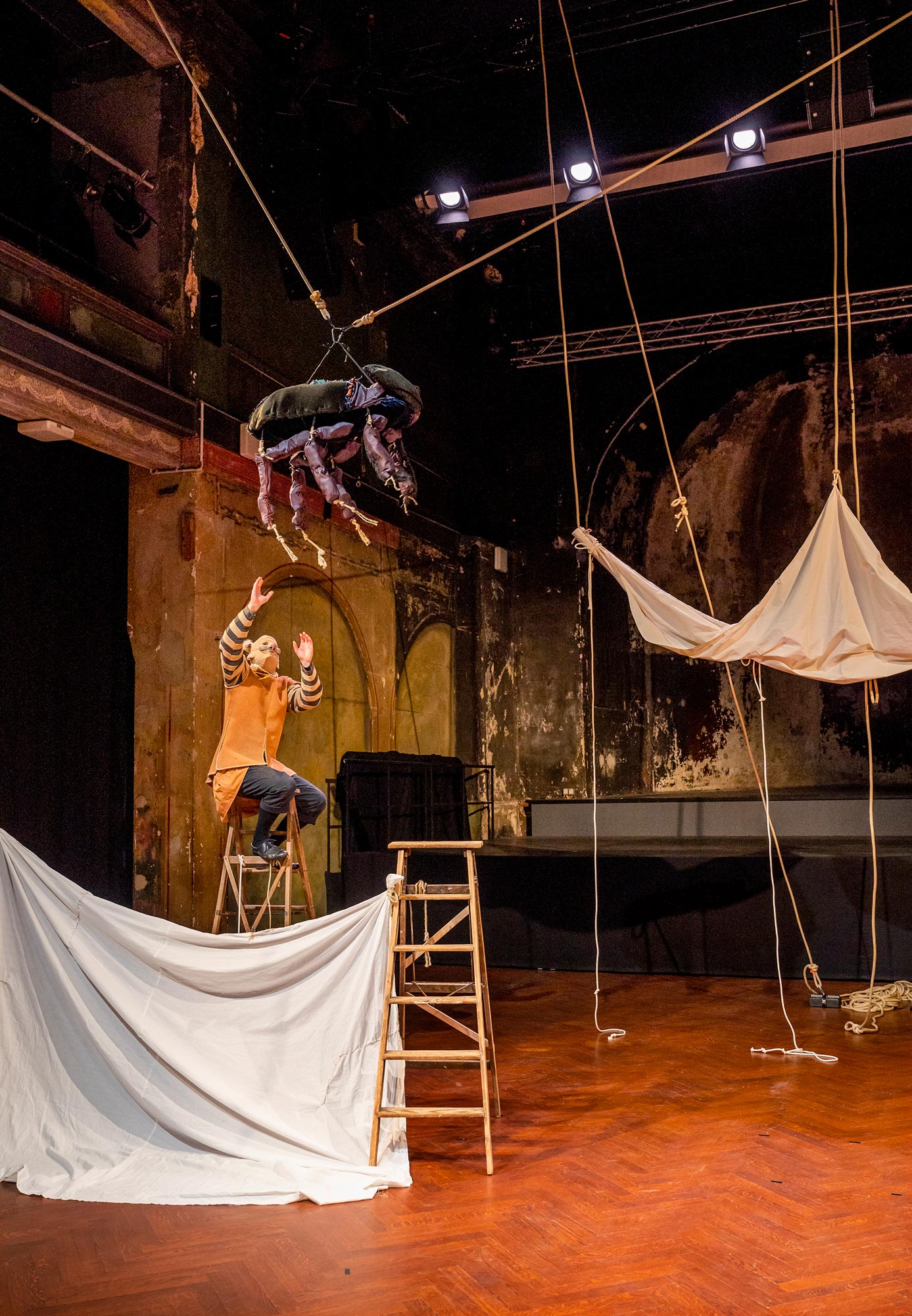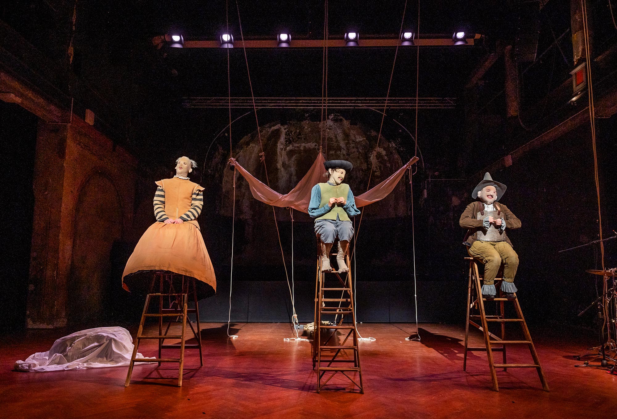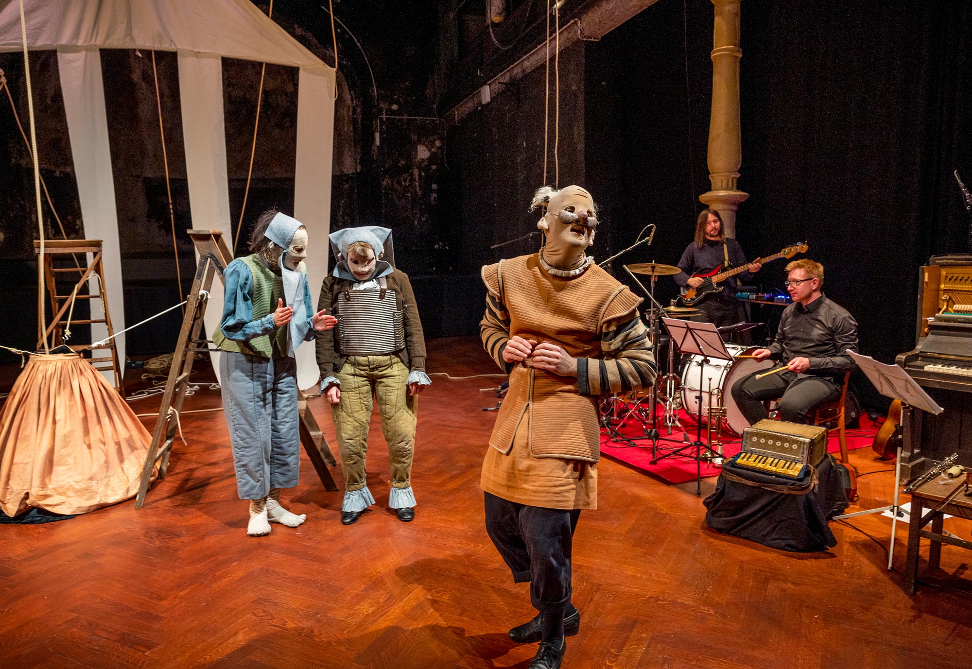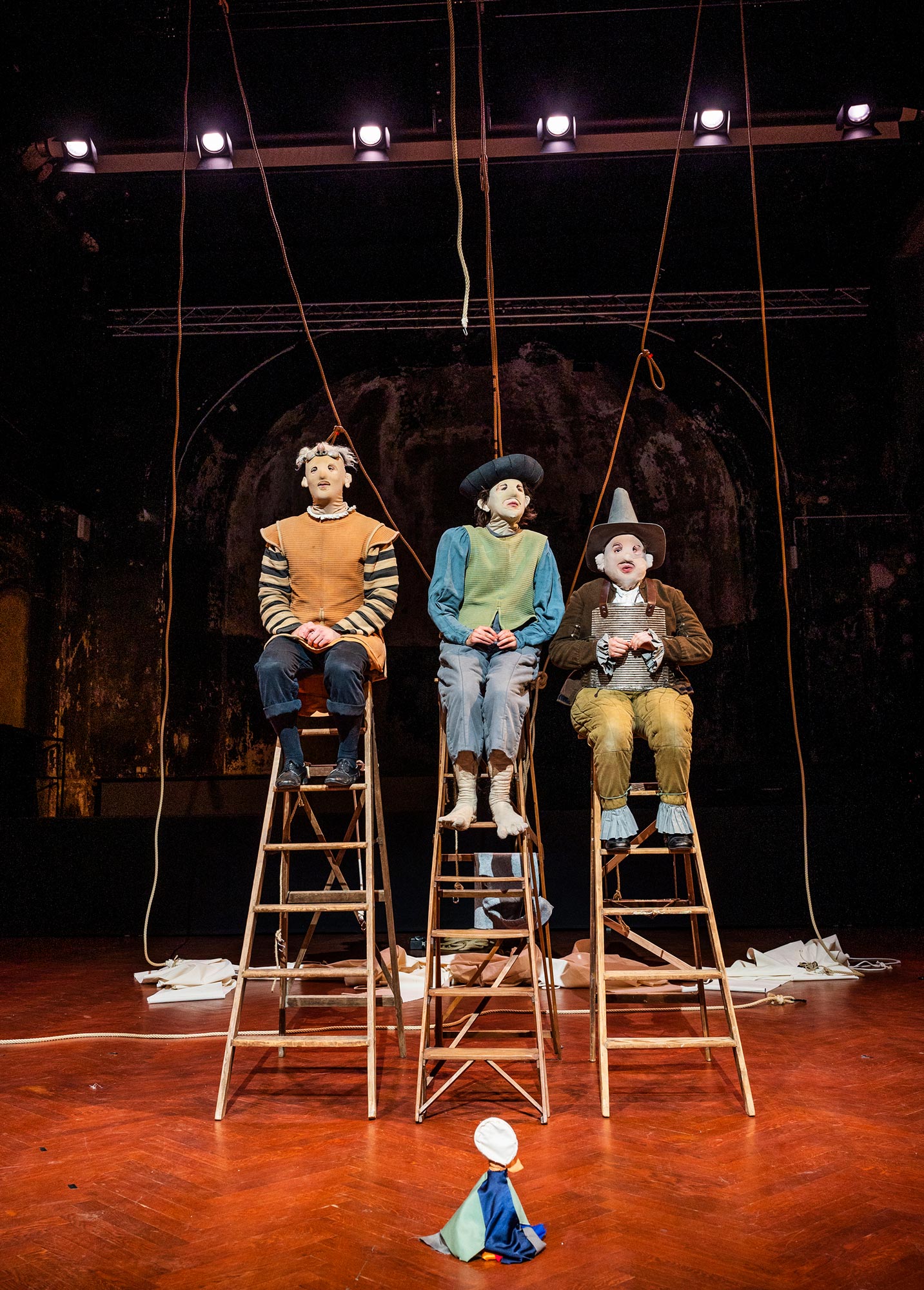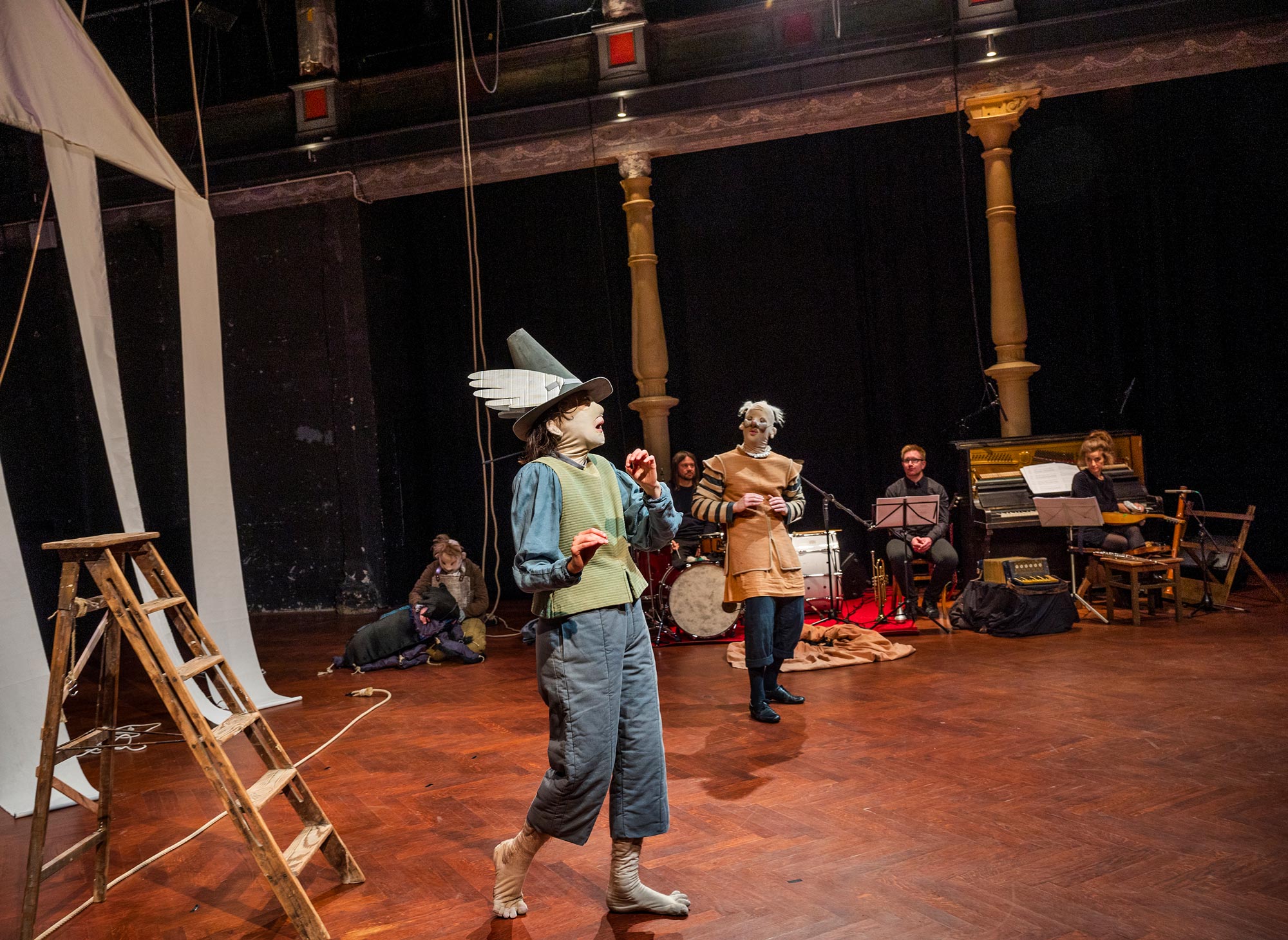 Es spielen Rico Dietzmeyer, Felicitas Erben, Jojo Rösler | Musik & Komposition Johannes Cotta, Annegret Enderle, Christoph Püngel | Regie & Szenarium Rico Dietzmeyer | Masken & Szenographie Franziska E. Schubert | Bühne & Ausstattung Lisa-Maria Totzke | Co-Regie & Licht Christoph Püngel | Mitarbeit Gerda Baumbach | Grafik Lisa-Maria Totzke | Fotos Rolf Arnold